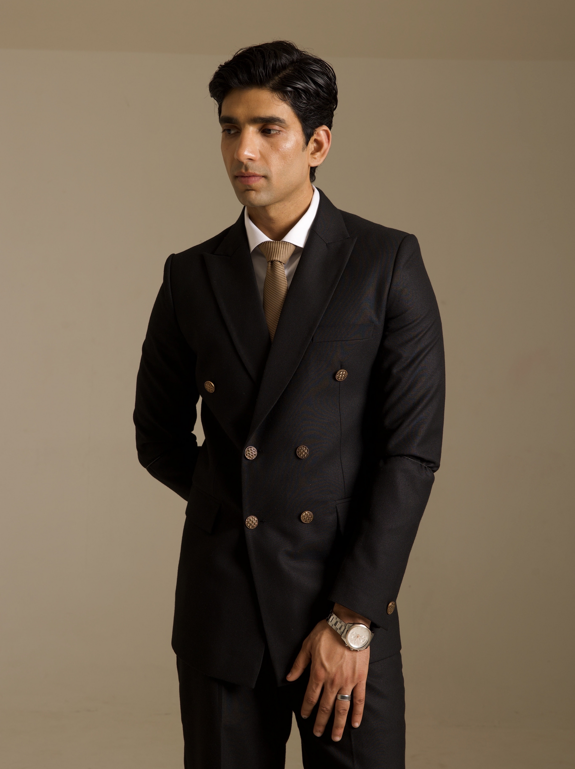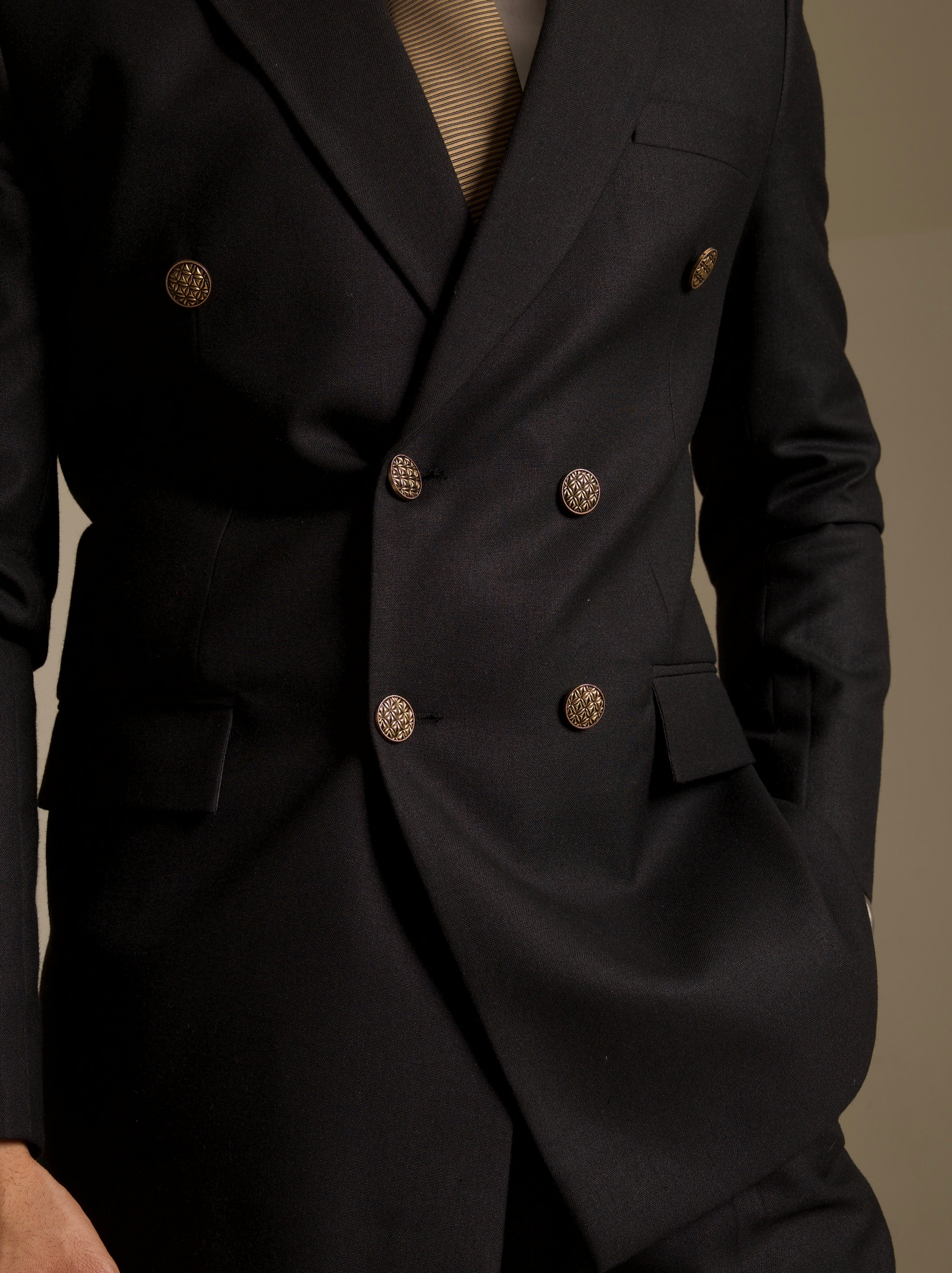 A refined fusion of timeless elegance and modern tailoring, this Classic Suit is the epitome of power dressing. Crafted from a premium suiting cotton blend, it offers unparalleled comfort and durability, ensuring both style and practicality. The fitted double-waisted blazer enhances structure and sharpness, while the classic pleated pants provide a sophisticated, timeless silhouette. Accentuated with gold-tone embossed buttons, this ensemble is designed for individuals who appreciate effortless sophistication and bold confidence.